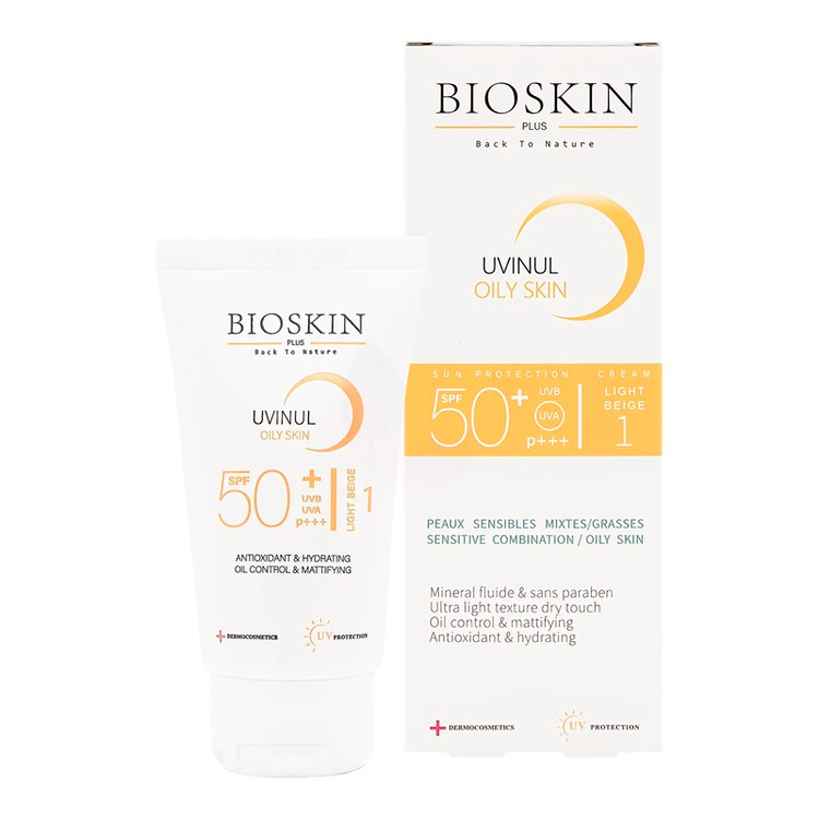 کرم ضد آفتاب بی رنگ پوست چرب و مختلط SPF50 بایو اسکین 40 میلی لیتر